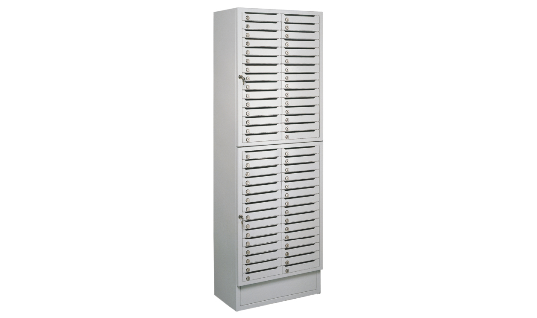 60 отдельно запираемых ячеек с прорезью в каждой двери для закладки корреспонденции