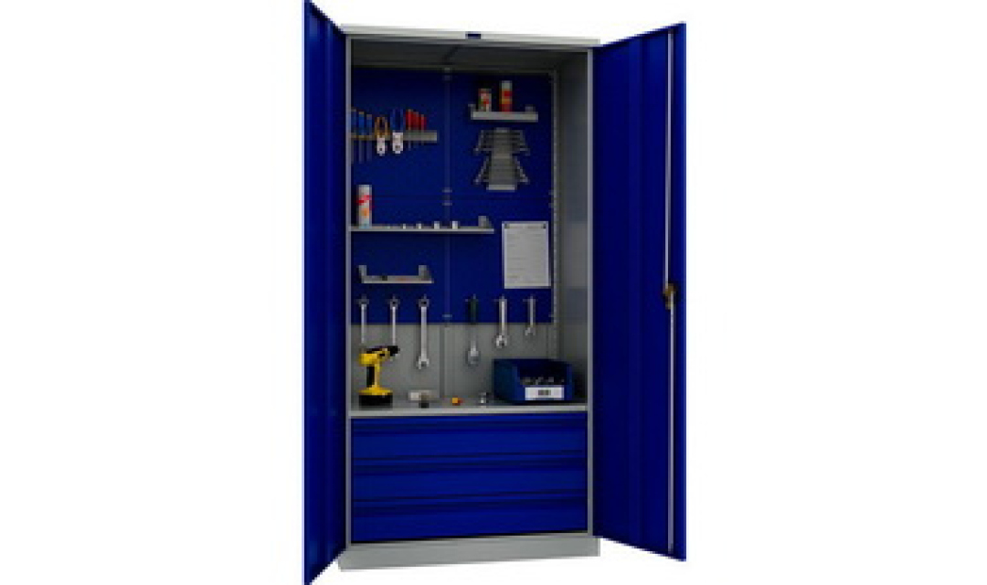 Предназначен для хранения инструментов, слесарных приспособлений и других изделий на предприятиях, мастерских, автосервисах.