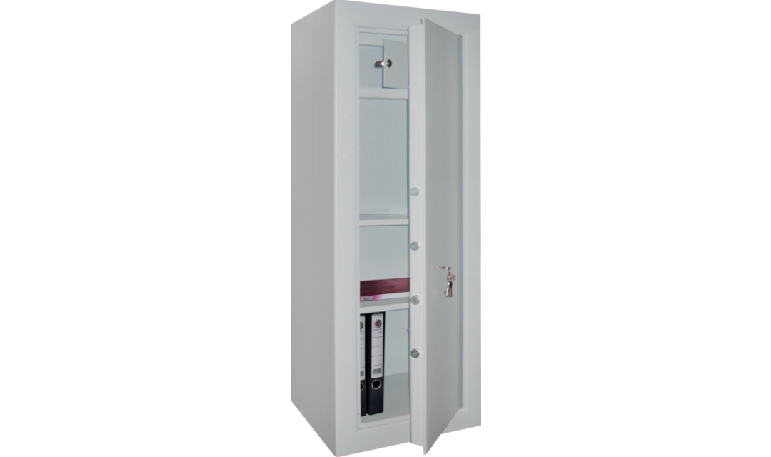 Корпус сейфа и дверь заливные. 3-х сторонняя ригельная система запирания; с увеличенным ходом горизонтальных ригелей. Защита замка от высверливания.