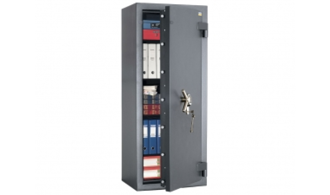Корпус сейфа и дверь заливные. 3-х сторонняя ригельная система запирания; с увеличенным ходом горизонтальных ригелей. Защита замка от высверливания.