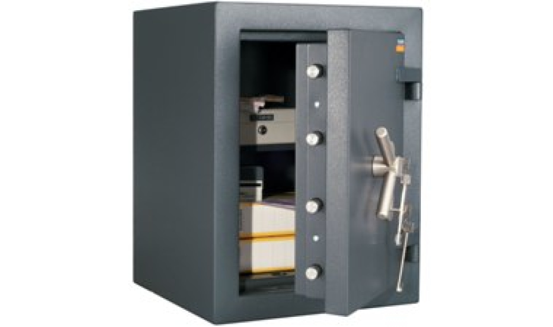 Корпус сейфа и дверь заливные. 3-х сторонняя ригельная система запирания; с увеличенным ходом горизонтальных ригелей. Защита замка от высверливания.