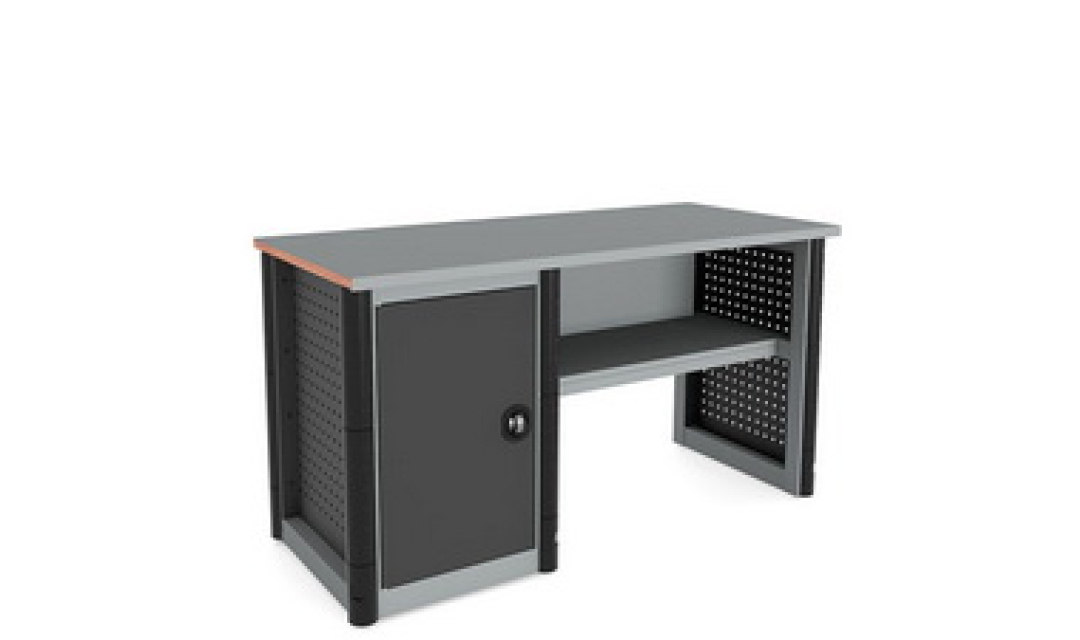 Боковые перфорированные стенки тумбы и опоры позволяют размещать на них различные стандартные аксессуары
